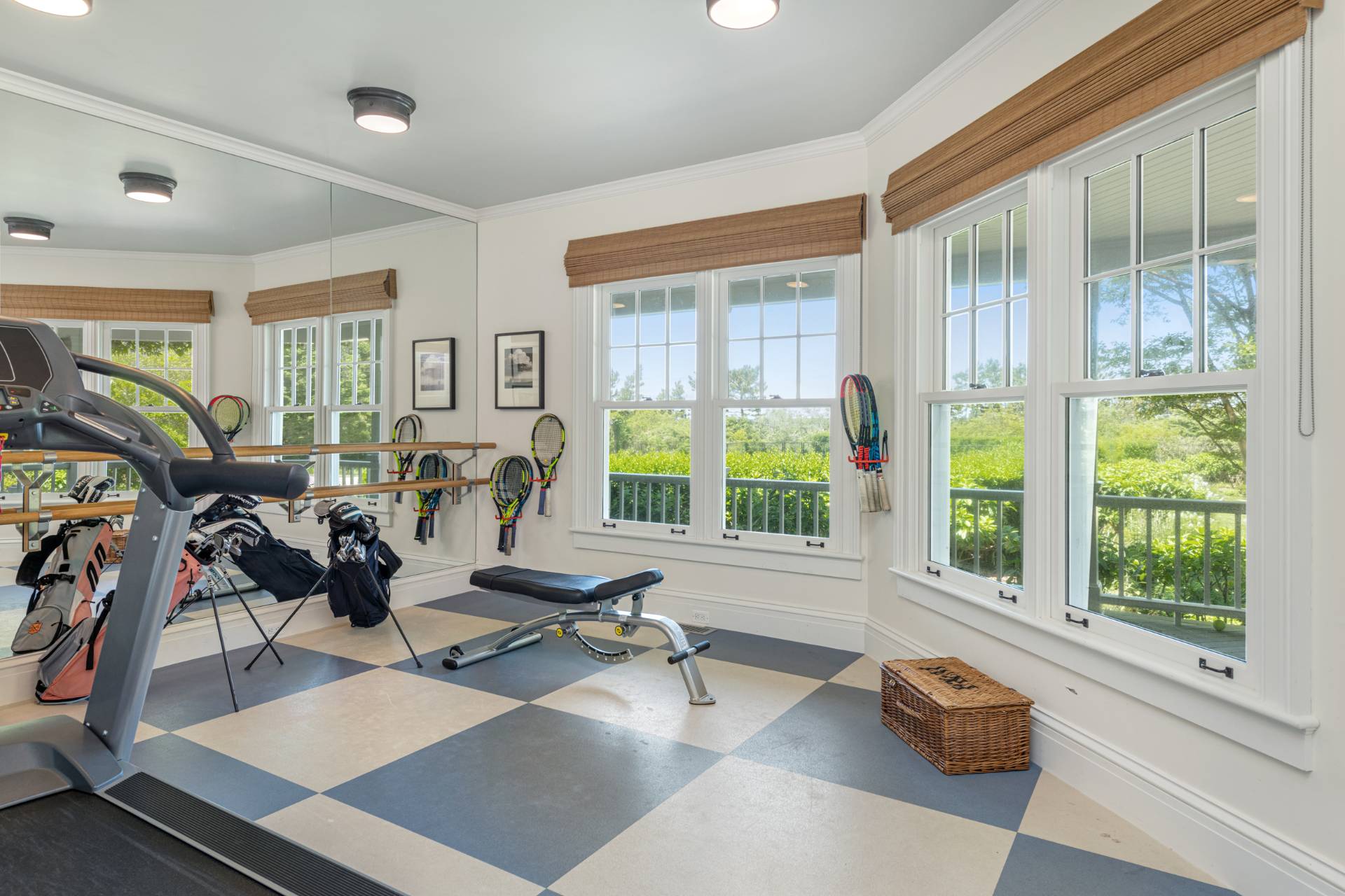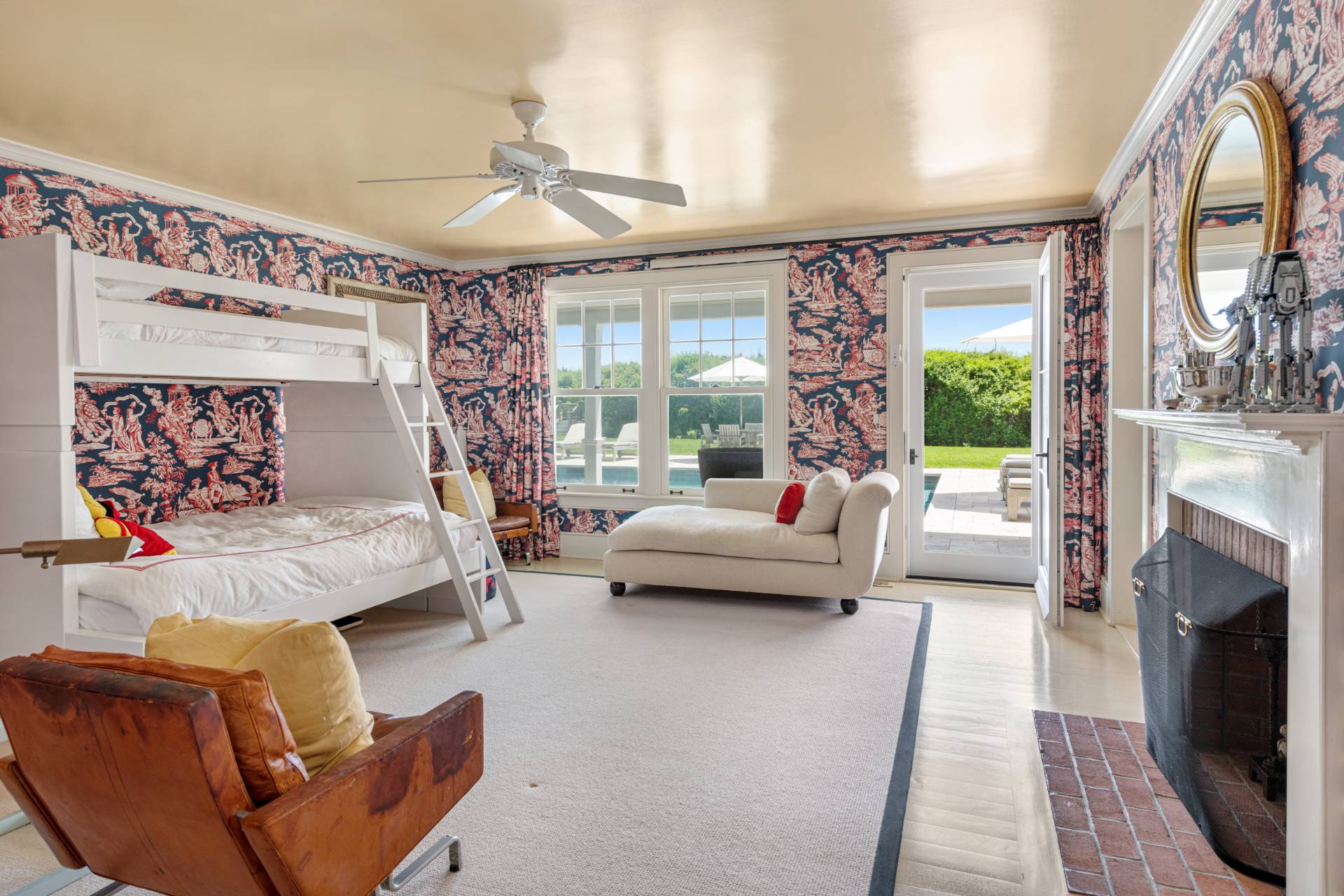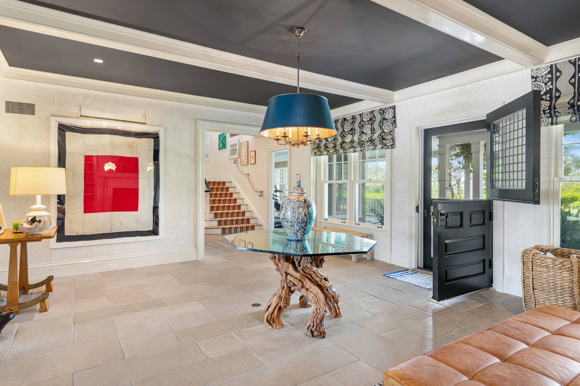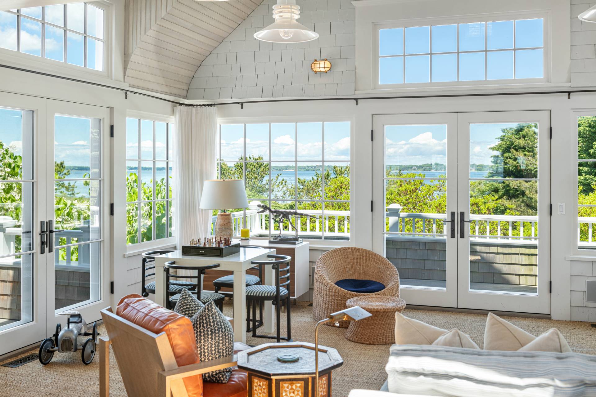 Oceanfront and located on the prestigious and incomparable Meadow Lane, this 3.4 acre property with tennis is unparalleled. As you enter the very private property through the gates, a winding drive through lush landscaping reveals a true gem. Extensively rebuilt by master builders John Hummel & Associates with design by David Netto, the beach-casual traditional home totals 8600sf of living space. The essence of the home begins upstairs where a generous primary suite features 270-degree views from ocean-to-bay, with sitting area, a large dressing room, and private covered balcony is found. Next there are separate library and office - one with ocean views, the other overlooking the bay. Beyond that a fantastic great room with vaulted ceilings invites one to a casual yet elegant entertaining space, all the while surrounded by spectacular water views in both directions. A formal dining room including fireplace and butler pantry with wet bar are to your left, followed by a casual family room for enjoying sunsets with a porch overlooking the bay. A true ocean-to-bay kitchen has everything a chef could want, with light and views to match. Outside an extensive deck brings you even more entertaining space with unmatched views. On the first level are six en-suite bedrooms, classic entry foyer with fireplace, gym, pool cabana, wrap-around porch, staff quarters and laundry center. An oceanside pool and spa are at ground level, with lovely gardens beyond. A private boardwalk leads you across double dunes which offer extensive protection from the seas, and out to one of the most coveted stretch of beach found anywhere in the world. On the front side of the home a regulation north/south Har-Tru tennis court beckons for the sports enthusiast. Truly turnkey, this home is for those who appreciate only the finest in life.