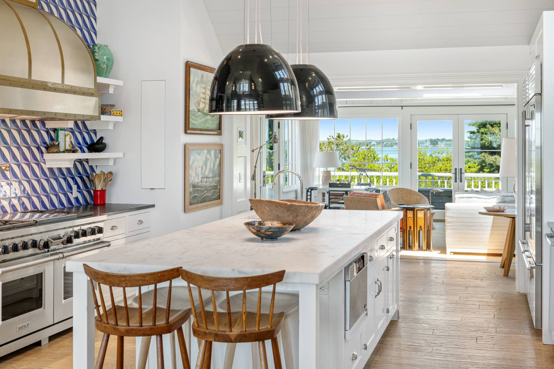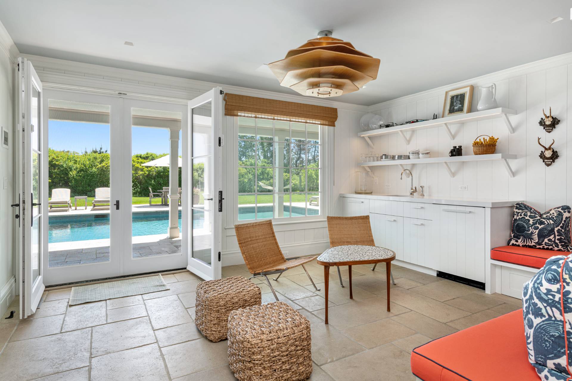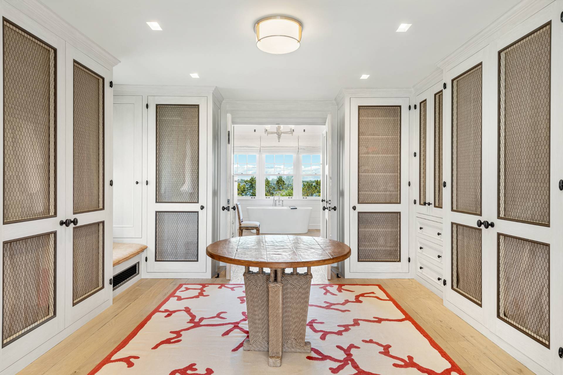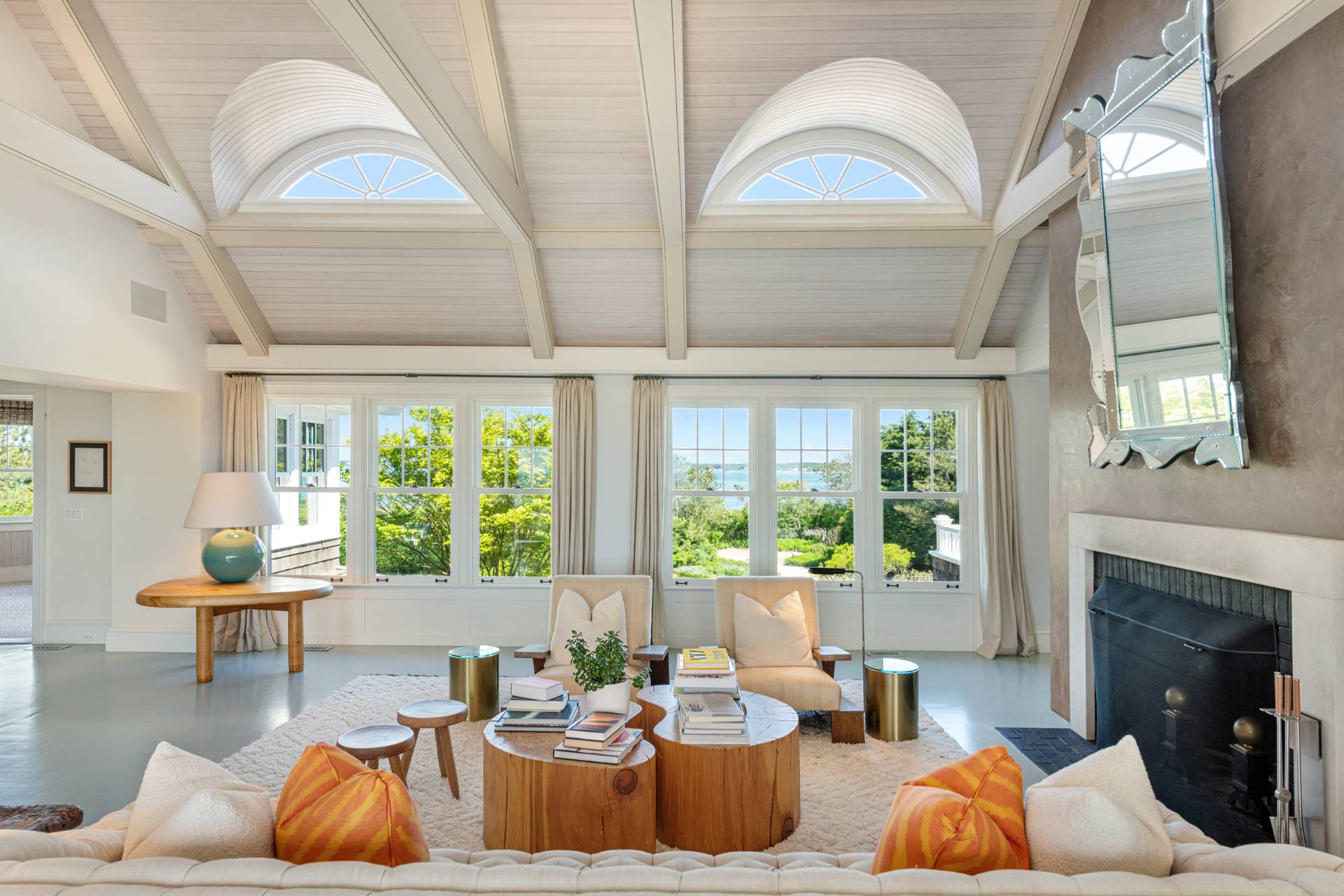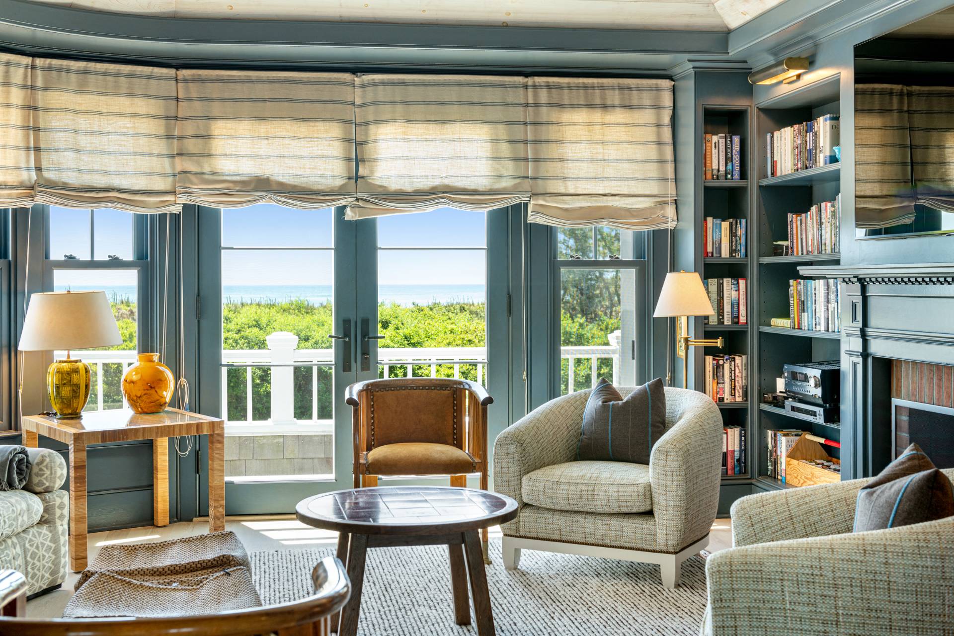Oceanfront and located on the prestigious and incomparable Meadow Lane, this 3.4 acre property with tennis is unparalleled. As you enter the very private property through the gates, a winding drive through lush landscaping reveals a true gem. Extensively rebuilt by master builders John Hummel & Associates with design by David Netto, the beach-casual traditional home totals 8600sf of living space. The essence of the home begins upstairs where a generous primary suite features 270-degree views from ocean-to-bay, with sitting area, a large dressing room, and private covered balcony is found. Next there are separate library and office - one with ocean views, the other overlooking the bay. Beyond that a fantastic great room with vaulted ceilings invites one to a casual yet elegant entertaining space, all the while surrounded by spectacular water views in both directions. A formal dining room including fireplace and butler pantry with wet bar are to your left, followed by a casual family room for enjoying sunsets with a porch overlooking the bay. A true ocean-to-bay kitchen has everything a chef could want, with light and views to match. Outside an extensive deck brings you even more entertaining space with unmatched views. On the first level are six en-suite bedrooms, classic entry foyer with fireplace, gym, pool cabana, wrap-around porch, staff quarters and laundry center. An oceanside pool and spa are at ground level, with lovely gardens beyond. A private boardwalk leads you across double dunes which offer extensive protection from the seas, and out to one of the most coveted stretch of beach found anywhere in the world. On the front side of the home a regulation north/south Har-Tru tennis court beckons for the sports enthusiast. Truly turnkey, this home is for those who appreciate only the finest in life.