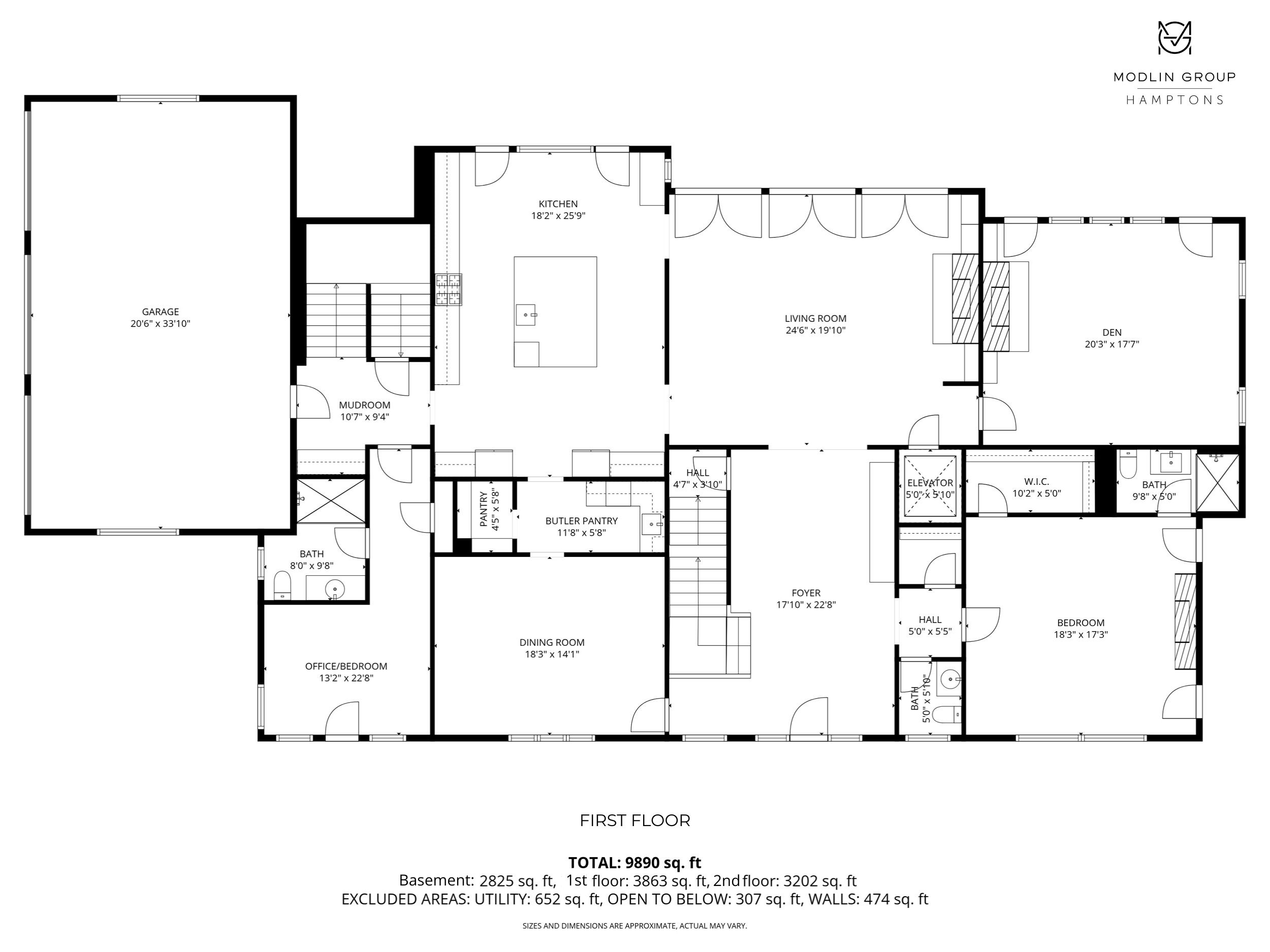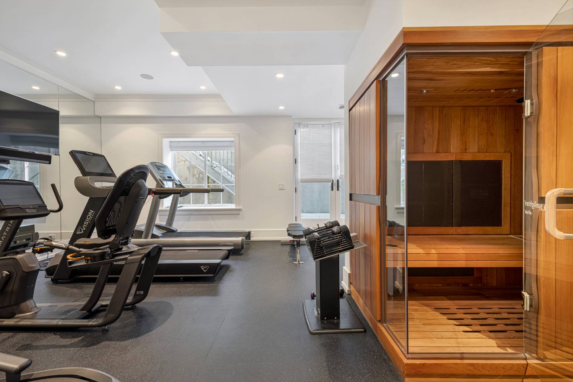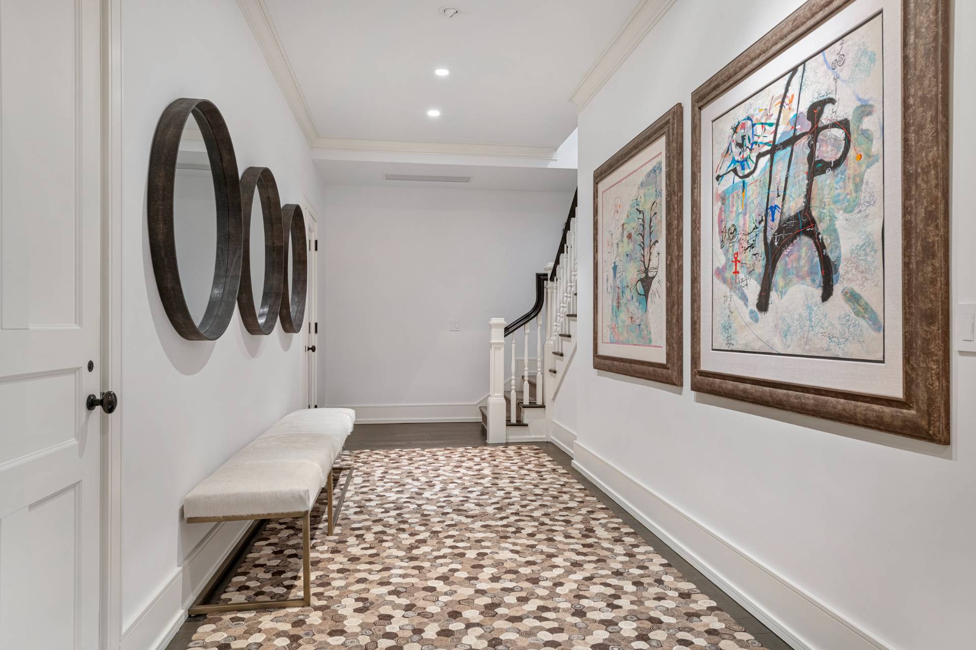 Located on one of the most prestigious lanes in Bridgehampton horse country, this grand home is sited on 1.84 acres with direct western sunset views across over sixty acres of farmland reserve. With interior design by Hamptons favorite Debra Geller, the home features eight bedrooms, eight full and one-half baths, and encompasses nearly 10,000 +/- sq. ft. across three levels, all serviced by an elevator. Upon entering the grand double-height foyer, one immediately feels the scale of the home. A large, open great room centers the entertaining spaces, with casual dining and an oversized kitchen to one side, and a sleek yet cozy den to the other. The formal dining room has direct sunset views across the polo fields, giving the sense of looking out over a vast green ocean. The first floor junior primary suite has its own covered porch, and both indoor and outdoor fireplaces. The second en-suite bedroom on this level may also serve as an office for quieter moments. Upstairs, the generously sized primary suite features an ample sitting room, a large walk-in closet, and an oversized bathroom suite with private terraces. The second level also offers three additional guest suites and one of two laundry centers. Accessed by either staircase or elevator, the finished lower level includes all the amenities one would expect: a large recreation area, wine room, gym flooded with natural light, sauna, theater, and two additional guest bedrooms. Moving outside, the grandeur of the gardens adds to the level of sophistication this property offers. Bathed in sunlight all day, there is more than enough room to experience Hamptons living. Covered porches for dining and relaxing lead out to the 20' x 50' pool with sundeck and inset spa, anchored by the pool house and outdoor kitchen. A full-size sunken tennis court is unobtrusive and set off to the side of the property, with raised produce and flower beds nearby. A true Hamptons classic, centrally located and a perfect East End getaway.